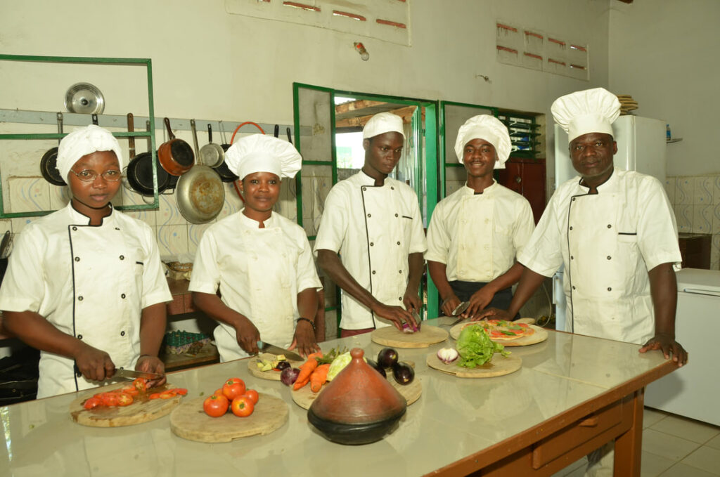 En complément de la formation en agriculture biologique, BIO-BENIN propose également une formation en restauration professionnelle. Au sein du restaurant Chez Guillaume, nos apprentis, femmes et hommes, préparent des repas savoureux à partir des ingrédients bio issus de notre ferme, contribuant ainsi à la santé et au bien-être de la communauté.