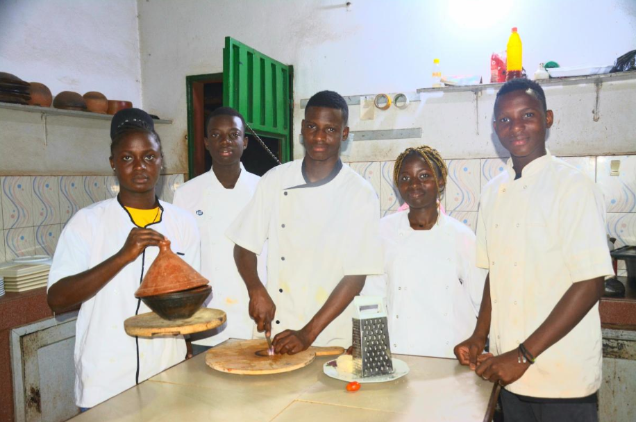 Pouces vers le haut par les employés et les apprentis du restaurant